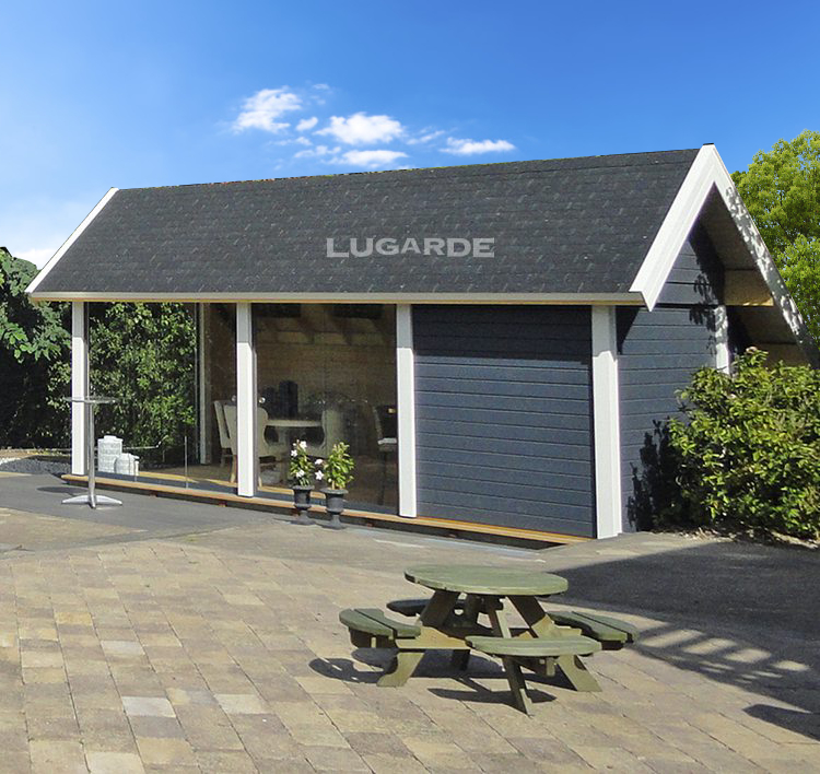 Dit prachtige tuinhuis heeft een modern en aantrekkelijk ontwerp. Met de glazen schuifwanden kunt u volledig van de zon genieten. Bovendien kunt u het tuinhuis hiermee veranderen in een soort veranda door de schuifwanden te openen.